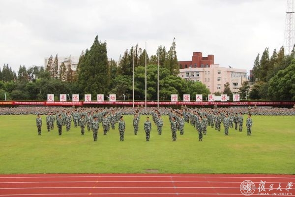 9月2日下午,复旦大学2022年学生军训汇报大会在邯郸校区南区体育场举行。