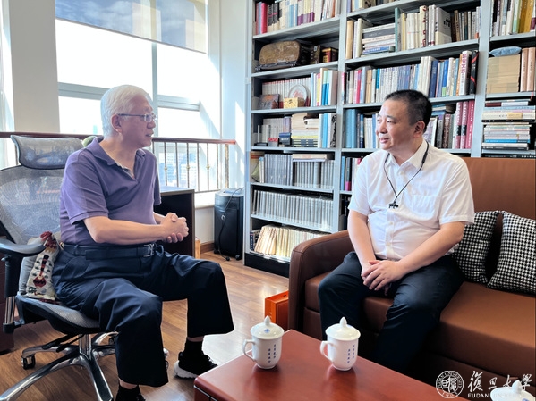9月9日上午,金力在邯郸校区光华楼看望慰问陈思和并致以节日问候。金力与陈思和亲切交谈,仔细询问其工作、生活状况,感谢他为复旦教育事业作出的贡献。2021年,陈思和荣获“全国教材建设先进个人”,这背后是常年如一的专注和坚守。