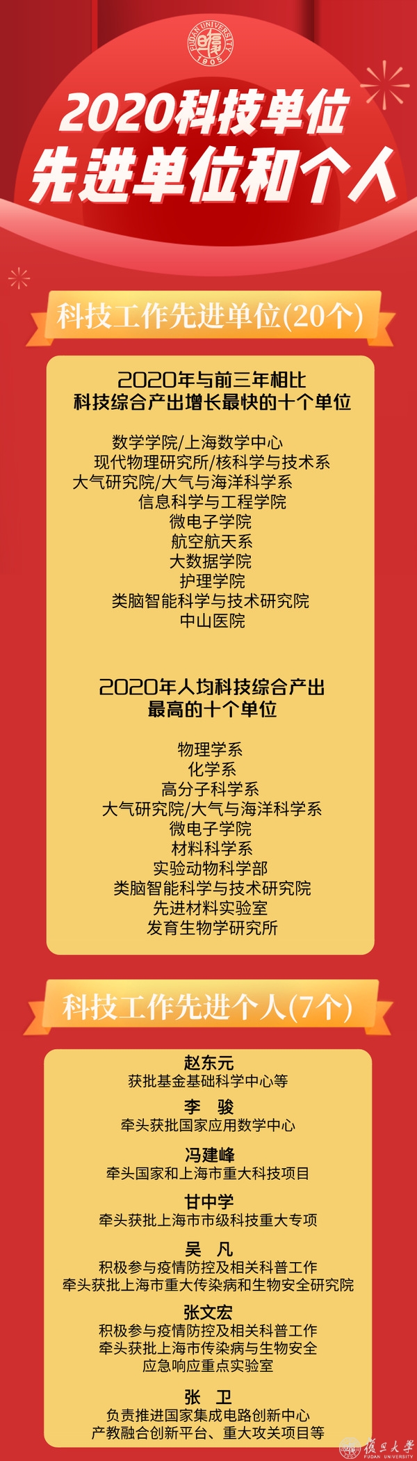 2020年度,究竟有哪些复旦科技工作先进单位、先进个人受表扬?一起来看全名单!